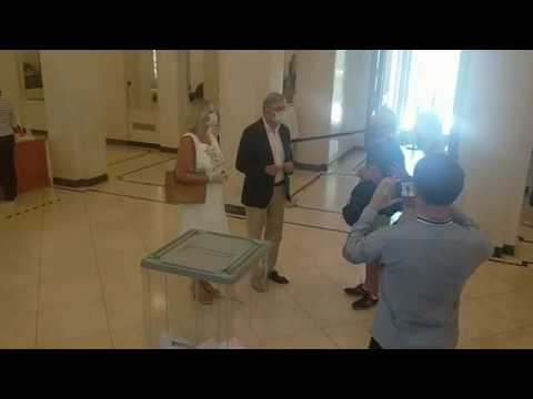 В 12 часов утра в Мадриде проголосовал чрезвычайный и полномочный посол Российской Федерации Юрий Петрович Корчагин с супругой.