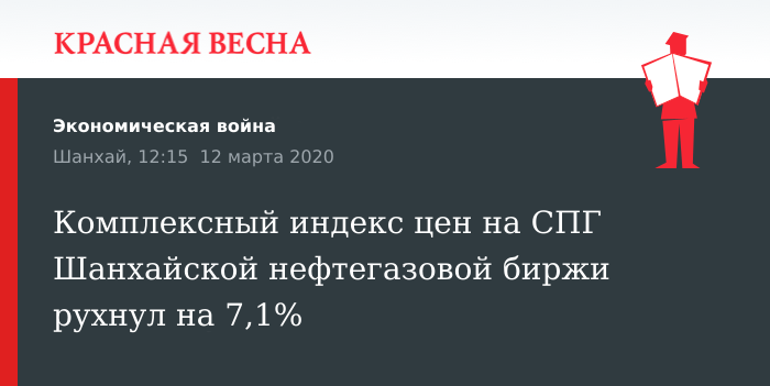 Комплексный индекс цен на СПГ Шанхайской нефтегазовой биржи рухнул на 7,1%