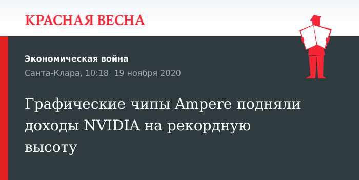 Графические чипы Ampere подняли доходы NVIDIA на рекордную высоту