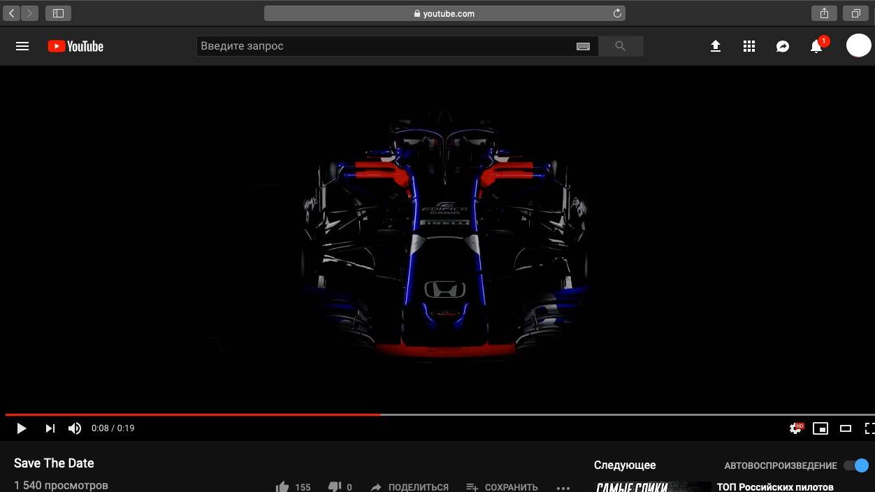 В сопроводительном ролике к сообщению мелькает фрагмент машины «Формулы-1», раскрашенный традиционные цвета команды.