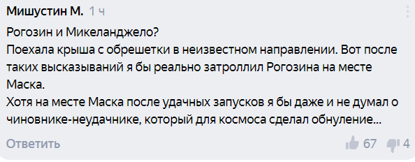 Читатели припомнили Рогозину его странное сравнение возможности американцев летать на российских космических кораблях с бесценными картинами Тициана и Микеланджело.