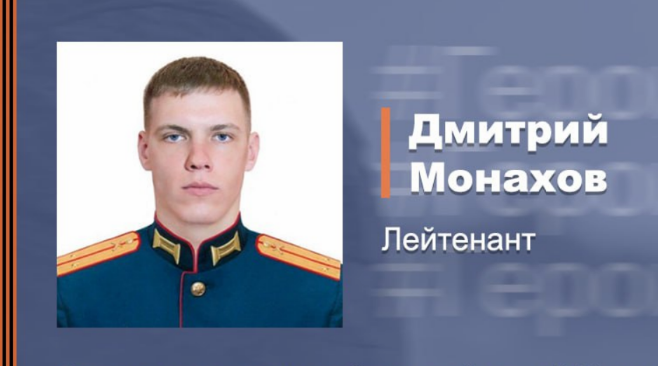 Согласно сообщению, в ходе наступления лейтенант Дмитрий Монахов корректировал огонь российской артиллерии на передовой. Он своевременно передавал координаты противника на огневую позицию и грамотно определял точки прицеливания. В бою офицер попал под ответный минометный обстрел, однако, несмотря на это, продолжил, рискуя жизнью, выполнять боевую задачу.