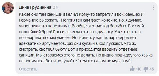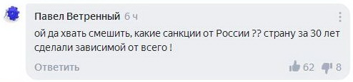 Впрочем, не все пользователи стали смеяться над ответными санкциями. Не менее поддержанным пользователями оказалось и серьезное высказывание по поводу западных санкций и ответу на них России.