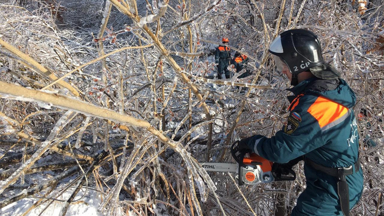 Дополнительные силы МЧС России ранее были переброшены в Приморский край из соседних регионов для оказания помощи в ликвидации последствий ледяного дождя.