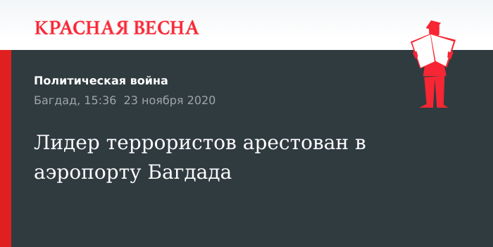 Один из лидеров ИГИЛ (организация, деятельность которой запрещена в РФ), известный как Абу Набаа, арестован контртеррористической службой Ирака в международном аэропорту Багдада, 23 ноября сообщило информационное агентство Shafaaq.
