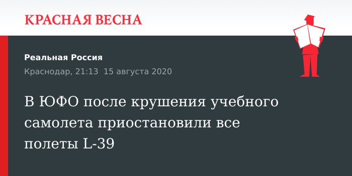 Полеты L-39 приостановлены на Юге России с вечера 13 августа до окончания расследования причин крушения учебно-тренировочного воздушного судна, 13 августа сообщает «Комсомольская Правда».