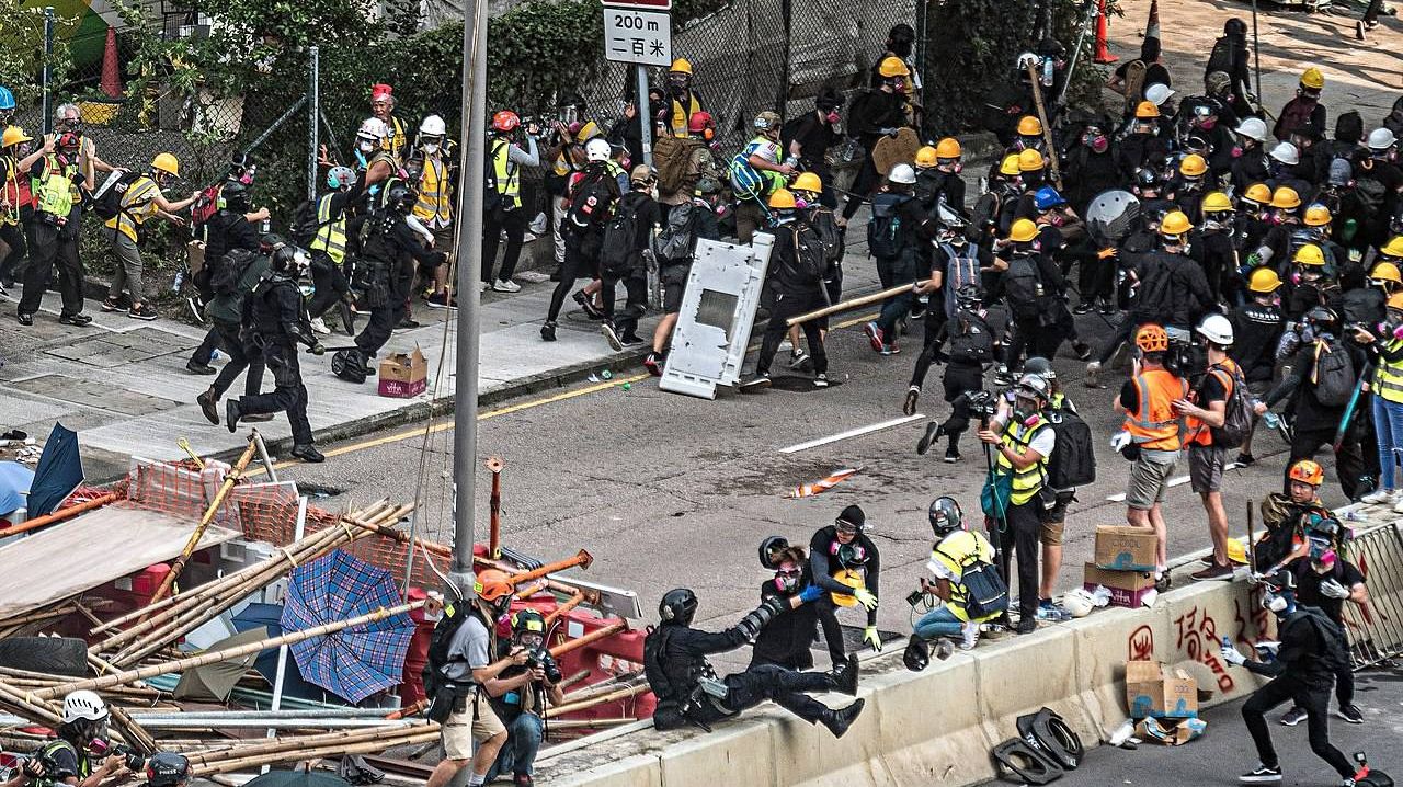 Акции, которые отмечают 17-й подряд уик-энд антиправительственных протестов с июня 2019 года, происходят на следующий день после того, как полиция применила водометы и слезоточивый газ, разгоняя протест возле штаб-квартиры правительства, на котором, в свою очередь, отмечалось пятилетие с начала сидячих забастовок 2014 года. Протестующие использовали бензиновые бомбы и сожгли коммунистический флаг.