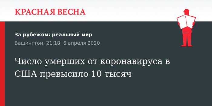 Жертвами коронавируса стали более 10 тыс. человек в США, сообщает 6 апреля пресс-служба Университета Джонса Хопкинса.