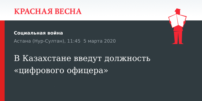 Учредить должность «цифрового офицера» в государственных органах Казахстана для проведения цифровизации экономики поручил правительству президент республики Касым-Жомар Токаев 4 марта во время совещания по реализации государственной программы «Цифровой Казахстан».