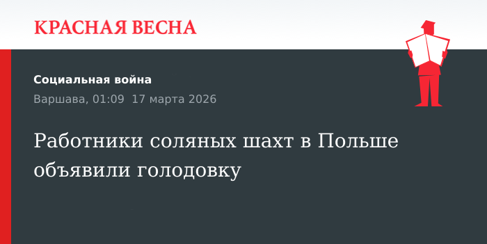 Работники соляных шахт «Солино» объявили голодовку с требованием защитить стратегические активы, заявили представители профсоюза «Солидарность», 17 марта сообщает Business Insider.