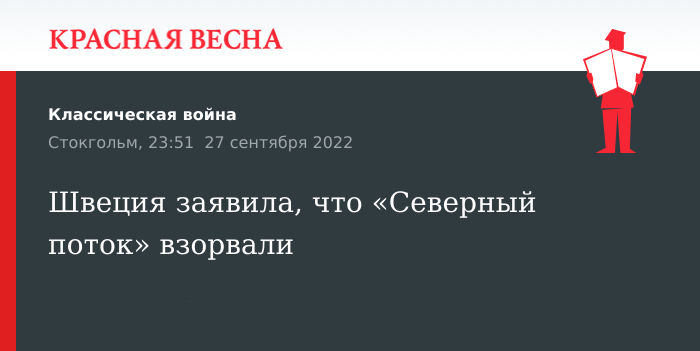 Швеция заявила, что «Северный поток» взорвали