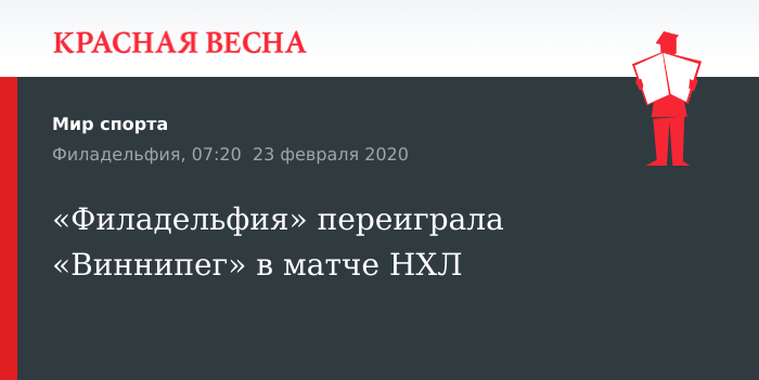 Отметим, «Филадельфия» занимает третье место в Столичном дивизионе с 77 очками в 62 матчах. «Виннипег» расположился на второй позиции «уайлд-кард» Запада с 69 очками в 63 играх.