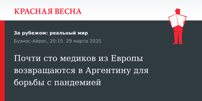 Решили вернуться из Европы в Аргентину, чтобы помочь в борьбе с пандемией, 98 аргентинских медработников, 28 марта сообщает Clarín.
