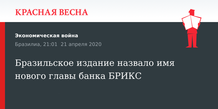 Бразильское издание назвало имя нового главы банка БРИКС