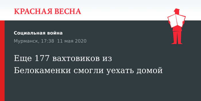 «Еще 177 вахтовиков „Велесстрой“ уехали с объекта в ночь на 9 мая», — говорится в сообщении подрядчика строительства Центра строительства крупнотоннажных морских сооружений (ЦСКМС) в Белокаменке Мурманской области. Также администрация «Велесстрой» уточняет, что в течение последних трех недель домой отправилось 535 человек.