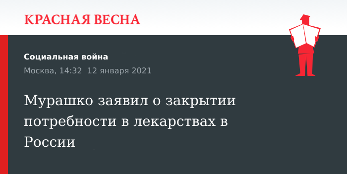 Мурашко сказал, что на текущий момент значительно увеличился объем лекарств, находящихся в обороте. Увеличилось собственное производство лекарств и импорт препаратов, не производящихся в РФ.