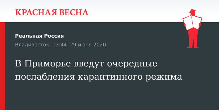 Напомним, ранее режим повышенной готовности в Приморском крае был продлен до 30 июня 2020 года. По данным регионального оперативного штаба по борьбе с коронавирусом темп прироста заболевших коронавирусом в Приморье снижается. По состоянию на 29 июня он составил 1,9%.