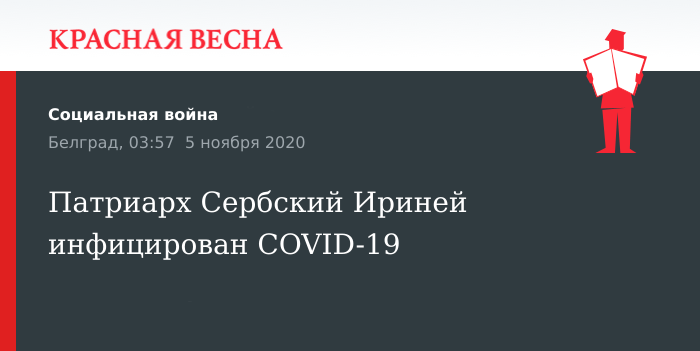 «В рамках регулярных процедур тестирования и после проведения эпидемиологической оценки с помощью ПЦР-теста на SARS COV2, который подтвердил, что у Его Святейшества Сербского Патриарха Иринея положительный результат без симптомов и отличное общее состояние. Его Святейшество госпитализирован в больницу в Белграде», — указано в сообщении Сербской православной церкви.