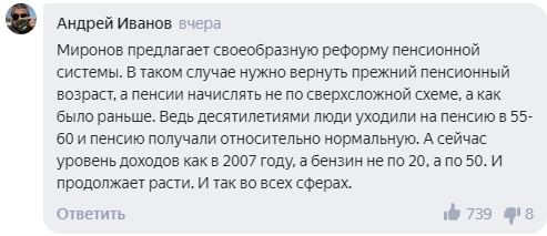 Пользователи Сети прокомментировали заявление лидера партии «Справедливая Россия» Сергея Миронова, который предложил ликвидировать Пенсионный фонд России (ПФР) и платить пенсии напрямую из бюджета.