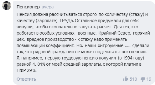 Комментаторы также отметили, что расчет размера пенсии очень запутан. Обычному человеку нереально разобраться в правилах начисления.