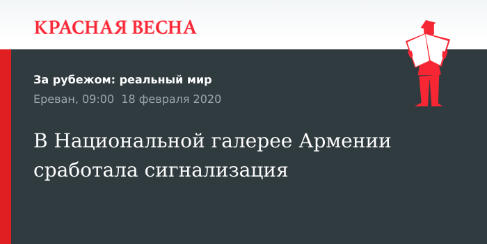В Национальной картинной галерее Армении в Ереване сработала сигнализация, 17 февраля сообщает Новости-Армения.