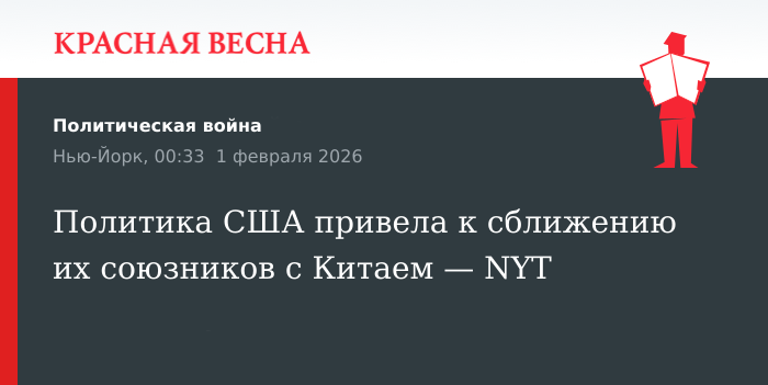 В статье упоминается визит в Пекин премьер-министра Канады Марка Карни, заявившего о «новом стратегическом партнерстве» с Китаем и готовности «разорвать связи» с США «ради экономического выживания».