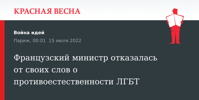 Напомним, Франция является одной из самых либеральных стран в отношении «прав» ЛГБТ. В 1985 году было принято законодательство, запрещающее дискриминацию по признаку сексуальной ориентации в сфере занятости, жилья. В2013 году был принят закон, разрешающий «ЛГБТ браки» и усыновление детей. Массовые манифестации не смогли защитить права большинства на традиционную семью.