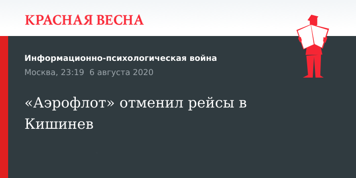 Рейсы по международным направлениям, в том числе в Кишинев, отменяются до 31 августа, сообщила 6 августа пресс-служба авиакомпании «Аэрофлот».