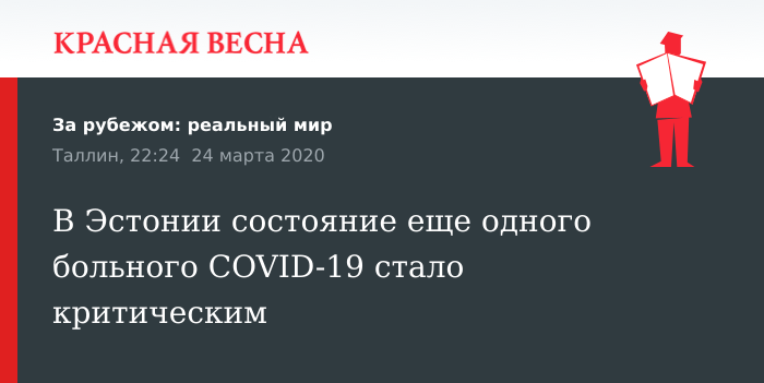В Эстонии состояние еще одного больного COVID-19 стало критическим