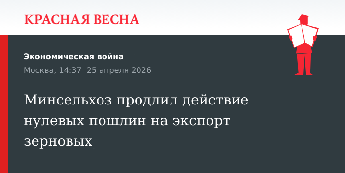 Нулевые вывозные пошлины опубликованы 24 апреля и начнут действовать с 29 апреля по 5 мая. Для указанной продукции Минсельхоз привел индикативные цены в долларах США: $234,7 (17,5 тыс. руб.) за тонну пшеницу и меслин (сельскохозяйственная культура, представляющая собой смесь зерен пшеницы и ржи, чаще всего в пропорции 2:1 — прим. ИА Красная Весна), $224 (17 тыс. руб.) за ячмень и $217,5 (16,5 тыс. руб.) за кукурузу.