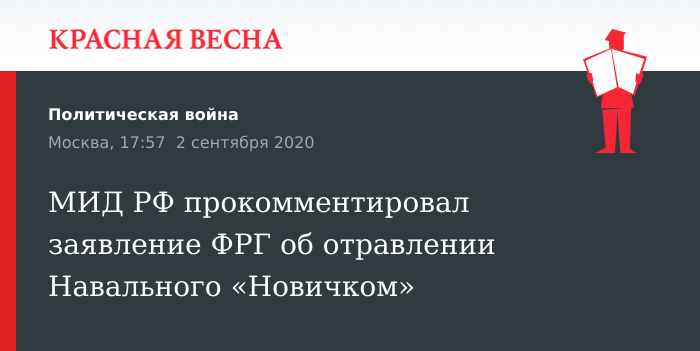 МИД РФ прокомментировал заявление ФРГ об отравлении Навального «Новичком»