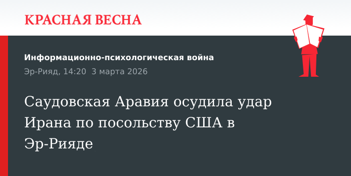 Отметим, 3 марта стало известно, что Иран нанес удар при помощи беспилотников по посольству США в Эр-Рияде. Позднее появилась информация, что Соединенный Штаты закрыли свое посольство в Саудовской Аравии.