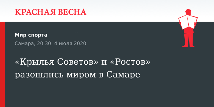 Нулевой ничьей завершился матч между «Крыльями Советов» и «Ростовом» в рамках 26-го тура Российской премьер-лиги (РПЛ) 4 июля в Самаре.