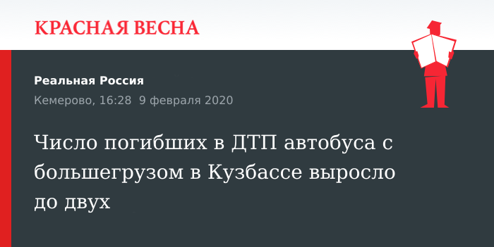 Число погибших в ДТП, в котором пассажирский автобус столкнулся с фурой на трассе в Кузбассе, выросло до 2 человек, 9 февраля сообщает РИА Новости со ссылкой на региональный Центр медицины катастроф.