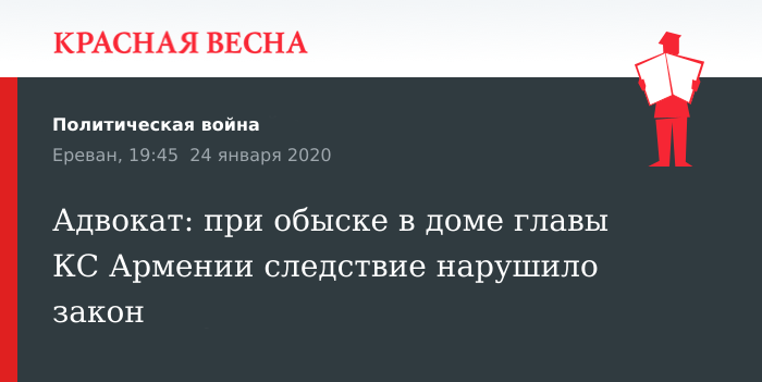 Адвокат: при обыске в доме главы КС Армении следствие нарушило закон