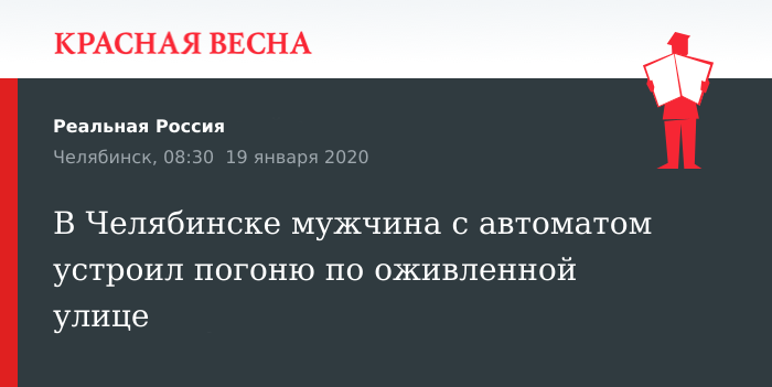 Два парня бежали впереди машины по оживленной улице, у одного из них был автомат, другой старался скрыться от преследователя, рассказал водитель, наблюдавший за погоней, 19 января сообщает местное издание 74.RU.