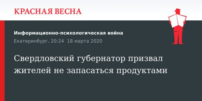 Свердловский губернатор призвал жителей не запасаться продуктами