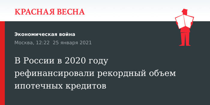 По данным специалистов, за прошедший год российские граждане рефинансировали рекордный объем кредитов на сумму порядка 600 млрд рублей. Если за 2019 год доля рефинансированных ипотек от общей суммы выданных кредитов составляла 6,8%, то за 2020 год она выросла до 13,7%.