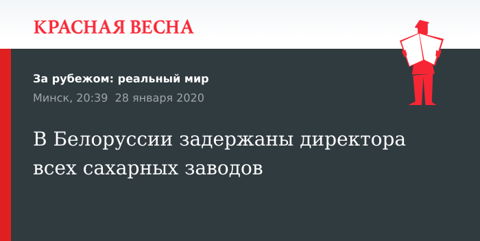 В рамках т. н. «сахарного дела» в Белоруссии арестованы 11 человек. Расследование по фактам коррупции ведет КГБ республики. По данным ресурса, среди арестованных, по всей вероятности, находятся и директора четырех сахарных заводов.