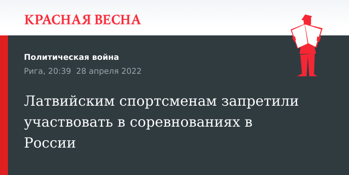 Поправки в закон о спорте, запрещающие латвийским спортсменам выступать в соревнованиях на территории России и Белоруссии, приняли власти республики. Об этом 28 апреля сообщается на официальном сайте латвийского сейма.