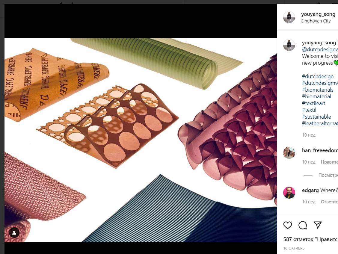 Альтернативу натуральной и синтетической коже разработала берлинский дизайнер текстиля Йонг Сонг (Youyang Song) из фруктовых отходов и водорослей, об этом 27 декабря пишет Designboom.