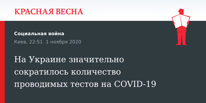 На Украине значительно сократилось количество проводимых тестов на COVID-19