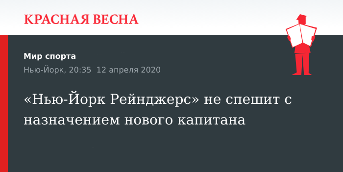 Комментарий о новом капитане команды «Нью-Йорк Рейнджерс» дал президент клуба Джон Дэвидсон, 12 апреля сообщает пресс-служба национальной хоккейной лиги (НХЛ).