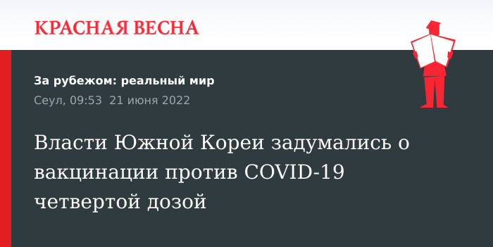 Планы вакцинации четвертой прививкой могут сыграть решающую роль в предотвращении еще не начавшейся возможной волны коронавируса, заявили власти Южной Кореи, 21 июня сообщает KBS World.