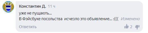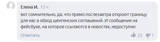 Пользователь Елена сомневается, что граница будет открыта 15 июля, кроме того, она отметила, что сообщение посольства Венгрии исчезло.