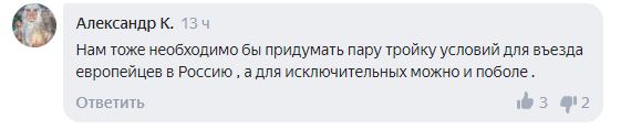 По мнению Александра, раз европейские страны ставят различные ограничения на въезд для жителей России, то им также необходимо поставить условия при въезде в Россию.