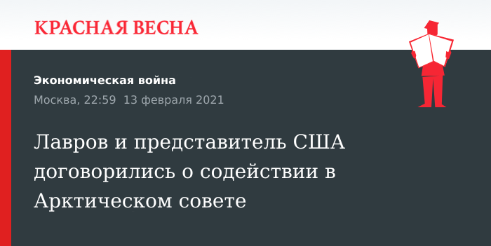 России и Соединенным Штатам необходимо развивать содействие в рамках работы Арктического совета. Об этом договорились глава МИД РФ и спецпредставитель президента США по вопросам климата Джон Керри 13 февраля во время телефонного разговора, сообщает пресс-служба российского дипломатического ведомства.