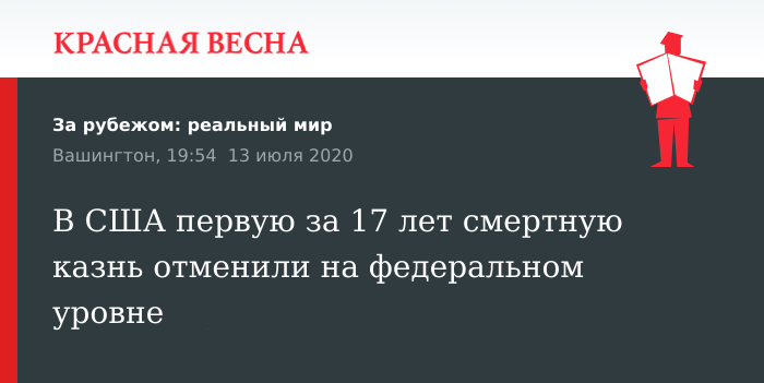 Отметим, федеральные власти США последний раз казнили осужденного в 2003 году. С тех пор в связи с отсутствием согласованных правил применения инъекций действовал своеобразный мораторий на применение высшей меры. При этом на уровне штатов смертные приговоры продолжали приводиться в исполнение.
