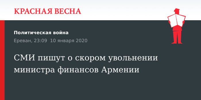 СМИ пишут о скором увольнении министра финансов Армении