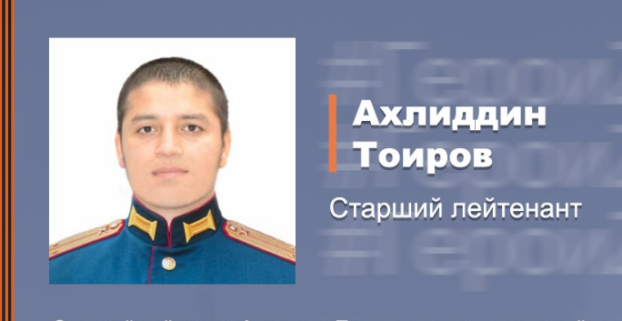 Мужество, самоотверженность и высочайшее мастерство командира танковой роты старшего лейтенанта Ахлиддина Тоирова и его боевых товарищей, разгромивших укрепления украинских неонацистов, позволили освободить один из городов в ходе выполнения спецоперации по освобождению Донбасса и денацификации Украины. Об этом 2 октября сообщила пресс-служба Минобороны РФ.